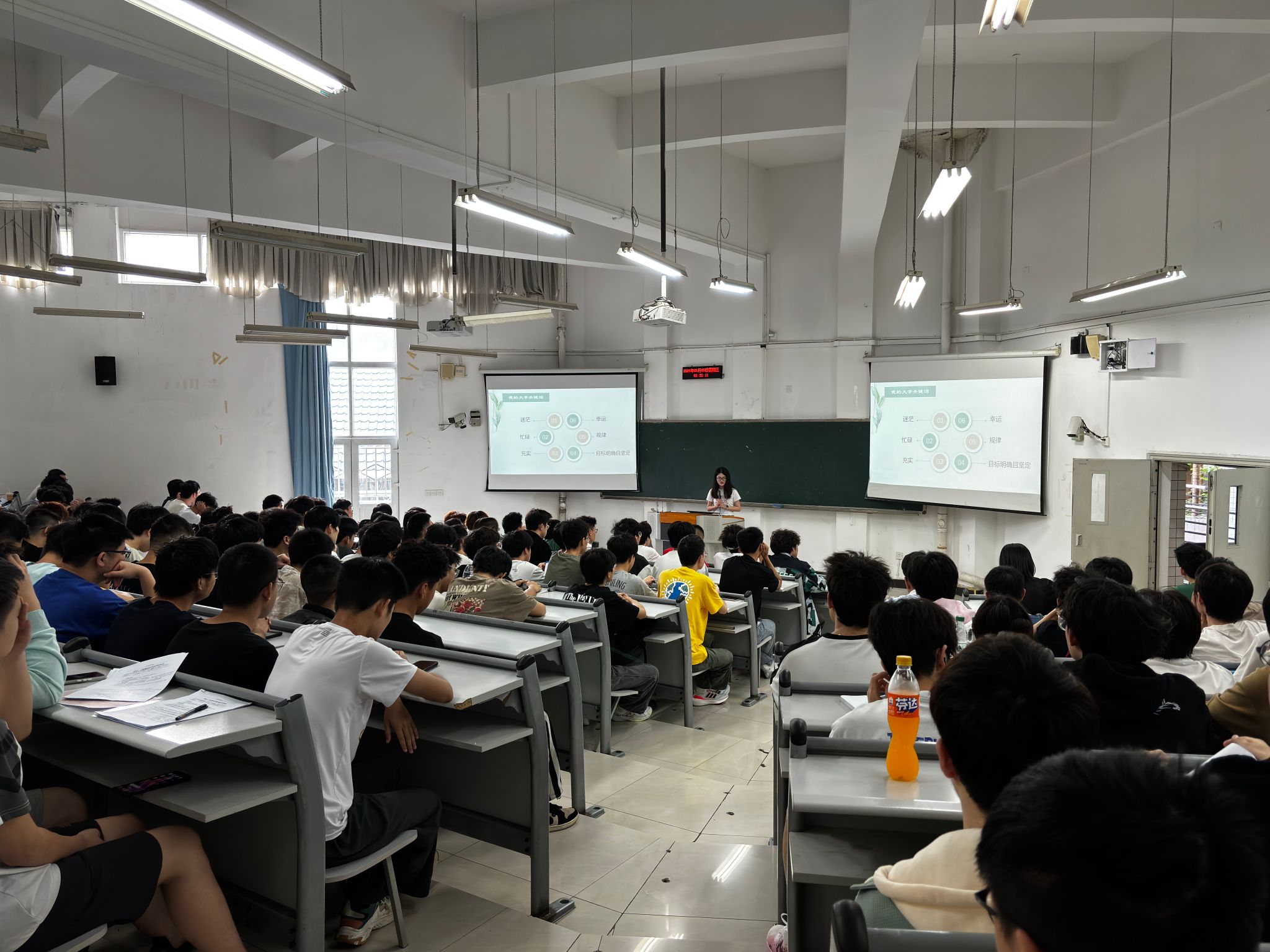 两场分享会同时进行,随后两位分享人交换教室再进行分享。张兴端学长主要从学业规划、考研规划和实际案例三方面进行了分享。他鼓励学弟学妹们要明确目标、做好规划、主动学习、积极沟通,在大学四年的各个阶段都要做好相应的规划:大一要争取高的绩点,大二要提升专业能力,大三要做好职业规划,大四要做好毕业设计。他还结合自身的竞赛经历和考研实例鼓励学弟学妹们要积极尝试、勇敢追求,时刻保持对知识的渴望和对生活的热爱,方能书写属于自己的精彩篇章。