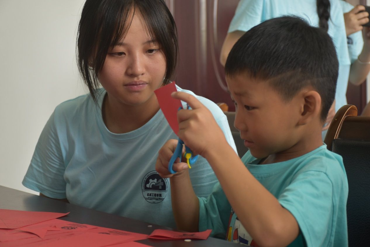 活动伊始,实践团成员们带着满满的热情和责任感,为孩子们准备了一系列手工剪纸和美术课程。在手工课堂上,实践团成员们耐心地帮助孩子们制作精美的剪纸。孩子们也在动手操作中体验到了传统艺术的魅力,锻炼了他们的动手能力。
