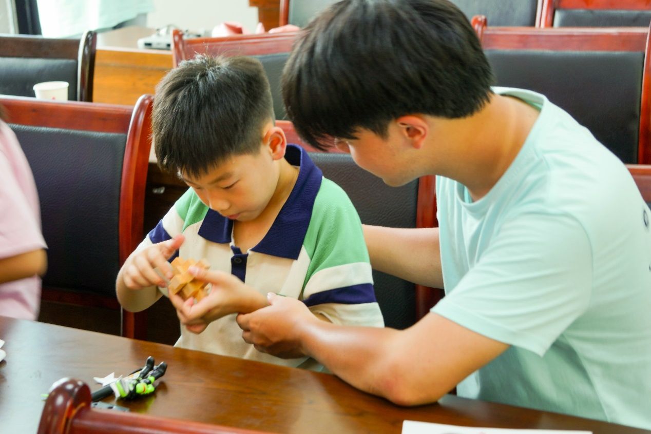 7月16日重庆工商大学122cc太阳集成游戏的“匠小青”基层服务践行团在重庆市万州区大周镇铺垭村党员活动室开展“匠心独运:解锁榫卯结构与鲁班锁之谜”科普课堂。活动由团队成员明世成主导,他通过生动的讲解与互动体验,带领青少年们深入探索了榫卯结构的精妙与鲁班锁的奥秘,激发了孩子们对传统文化与机械工程领域的浓厚兴趣与无限遐想。