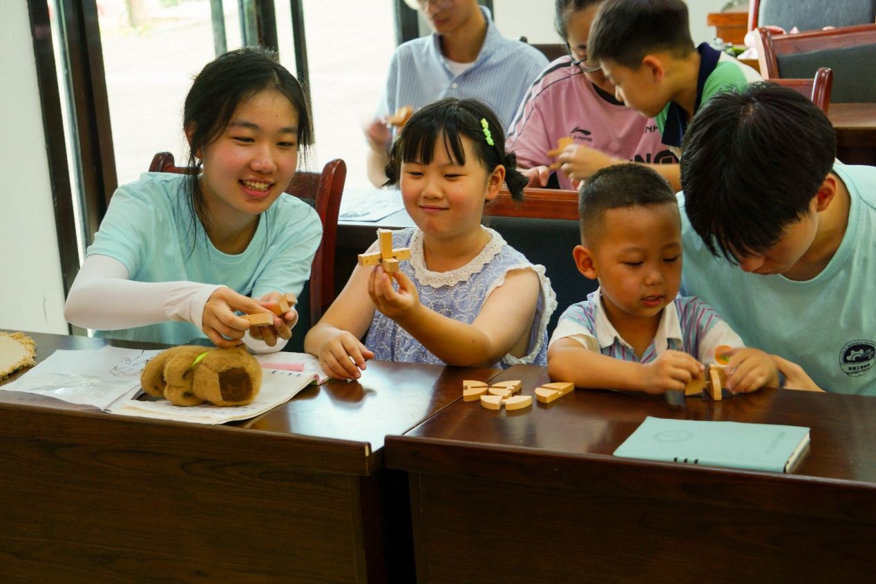 7月16日下午重庆工商大学122cc太阳集成游戏“匠小青”基层服务践行团带着满满的热情与创意,走进了重庆市万州区大周镇铺垭村,为这里的青少年们带来了一场别开生面的科普盛宴——“匠心独运:解锁榫卯结构与鲁班锁之谜”。此次活动旨在通过互动体验的方式,激发青少年对传统文化与机械工程的兴趣,培养创新思维和实践能力。