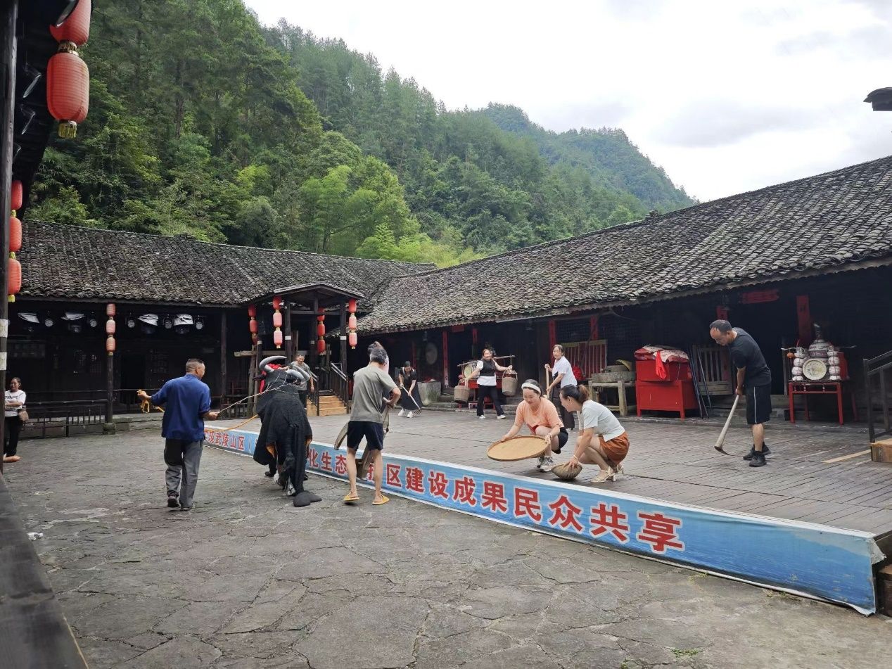 乡村振兴是现阶段国家强调的战略,也是整个社会热议的话题。乡村的振兴不仅强调经济振兴,也需要文化振兴,实现以文化建设赋能乡村振兴。为了领略小南海村的文化风采,体验地方风土人情,7月18日上午,重庆工商大学122cc太阳集成游戏“机韵振兴,灵秀乡音“社会实践团抵达小南海村土家十三寨的土家民俗歌剧院,观看小南海村民俗表演《幺妹儿住在十三寨》彩排。