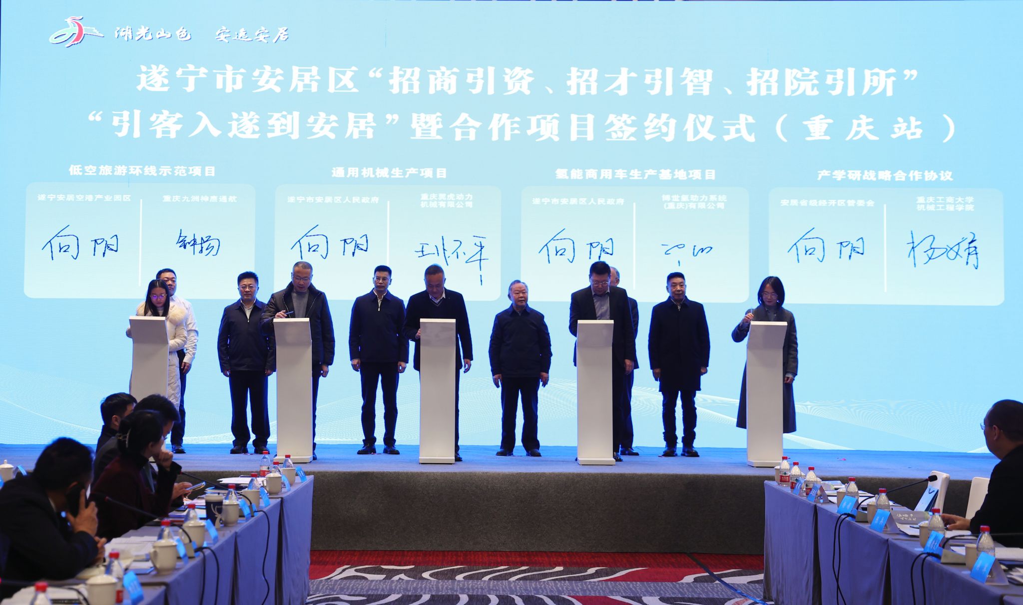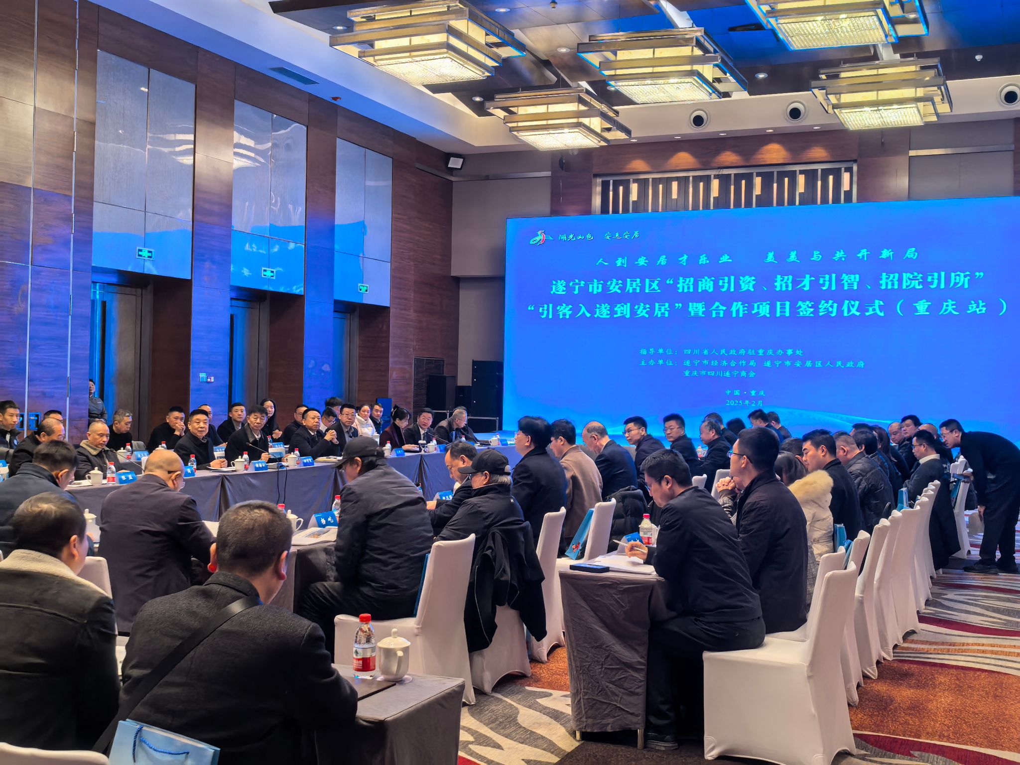 2月7日,122cc太阳集成游戏党委书记杨娟出席由四川省人民政府驻重庆办事处指导,遂宁市经济合作局、遂宁市安居区人民政府、重庆市遂宁商会主办的遂宁市安居区“招商引资、招才引智、招院引所”“引客入遂到安居”暨合作项目签约仪式(重庆站),并与安居经开区签订产学研战略合作协议。