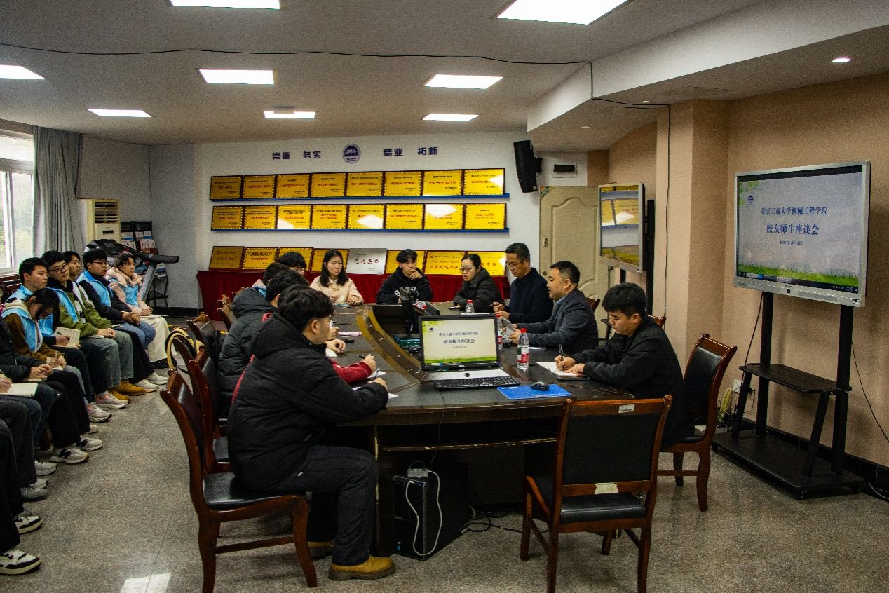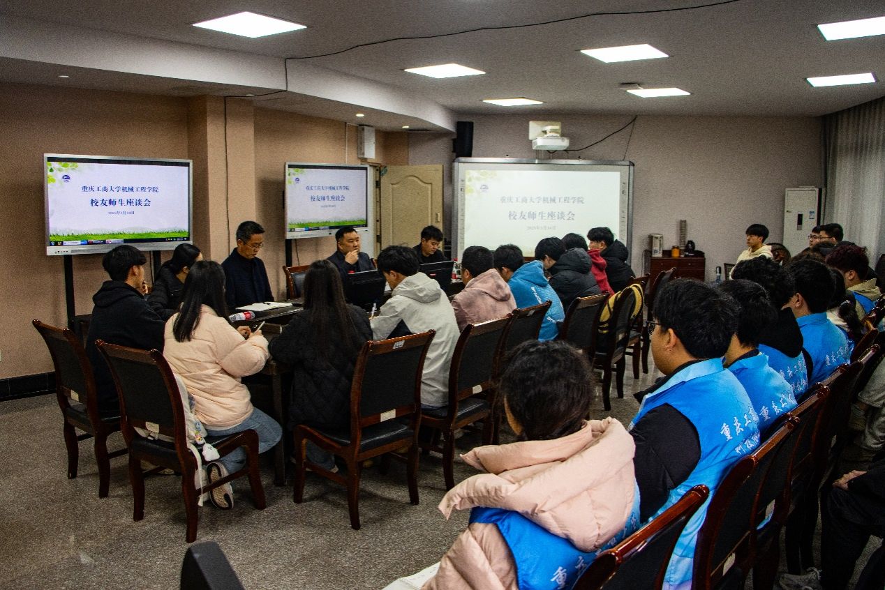 重庆工商大学122cc太阳集成游戏3月14日下午在南岸校区慧智楼90708会议室举办校友师生座谈会。重庆工商大学上海校友会副会长、上海领本智能科技有限公司、创始人兼CEO、上海交通大学博士、上海市领军人才、上海市科学技术发明奖、重庆工商大学2005级机械专业校友王军担任主讲嘉宾,分享学习心得及发展经验,助力学子规划未来发展。座谈会由122cc太阳集成游戏党委副书记、纪委书记陈春洁主持,学工办主任、分团委书记刘静及学院科技创新爱好者、学院学生干部们共同参与了此次座谈会。