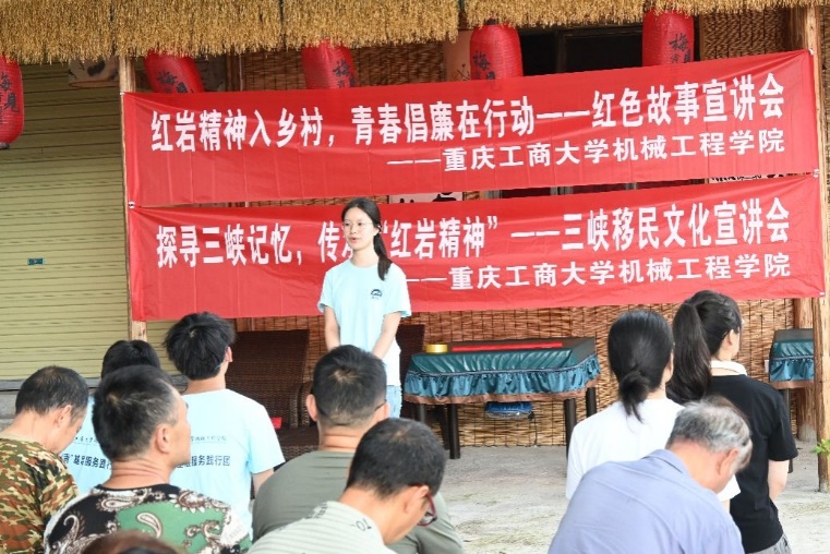 理论武装头脑,浇筑“精神大坝”。学院“匠小青”学生志愿者服务队赴万州区大周镇铺垭村开展三峡移民文化宣讲会,缅怀红岩先烈,传承与弘扬“红岩精神”和“移民精神”。