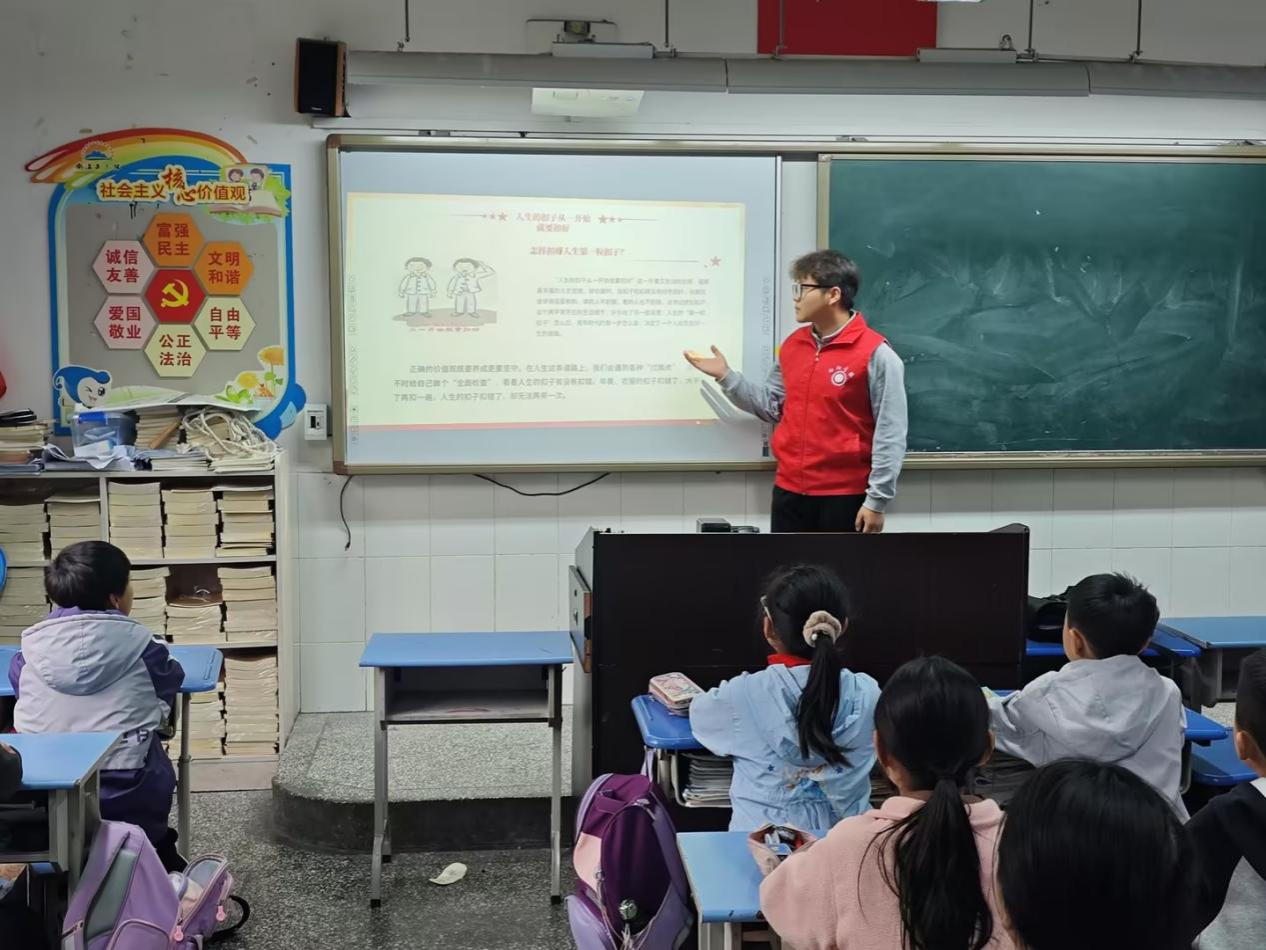 “廉洁课堂传递清风正气”。学院青年志愿者走进南温泉小学,为小学生们带去一堂“清廉启蒙课”。通过故事分享、互动问答,通过“第一粒纽扣”让小朋友们懂得“从小守规矩、明是非”的重要性。这场跨越年龄的对话,既是清廉精神的传递,更是对“扣好人生第一粒扣子”的生动践行。
