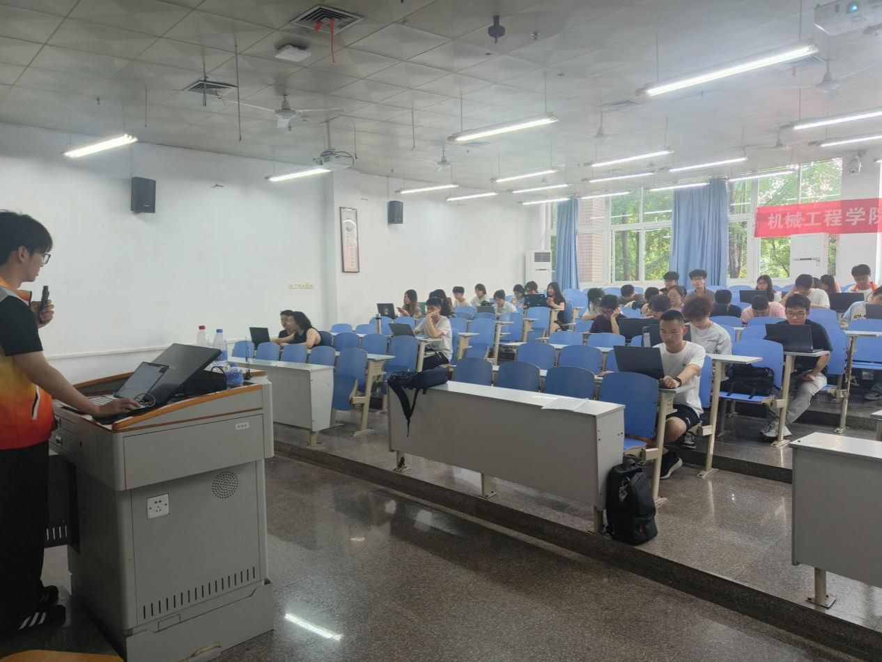 本次培训聚焦工程实践能力提升,通过专业软件技能培训强化同学们"问题导向"思维,培养团队协作意识,为专业发展奠定基础。主讲人刘炳新同学结合参赛经验与软件实操心得,系统梳理SolidWorks核心功能模块,通过案例展示:从二维草图绘制基础操作切入,逐步引导同学们完成齿轮箱、连杆机构等典型机械部件的三维建模。学习内容涵盖草图参数化设计、特征建模技巧、工程图生成等实用内容,并穿插机械设计实际案例,生动展现SolidWorks软件在工程领域的应用价值。