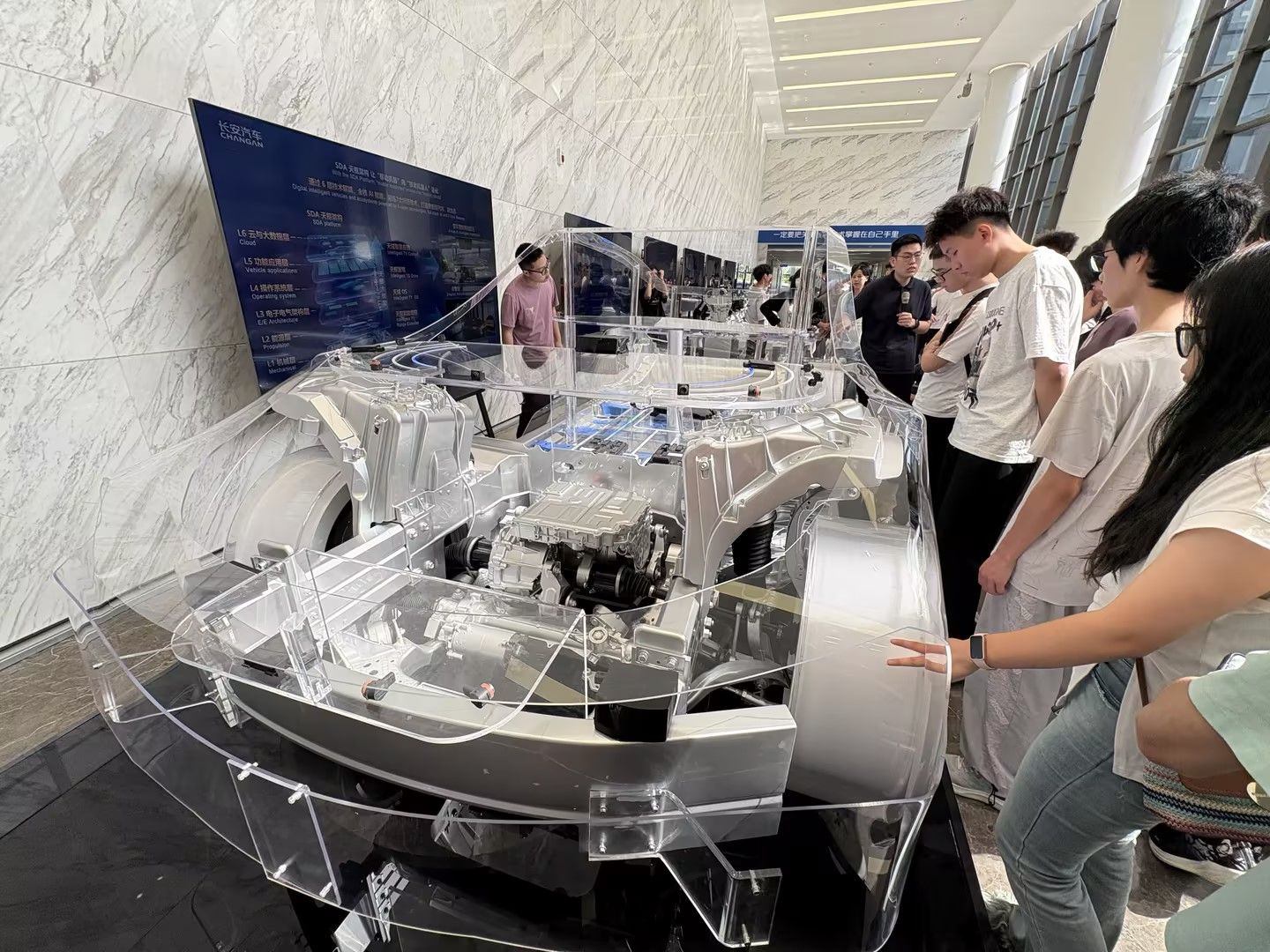 随后,师生们走进了长安汽车全球研发中心,这里汇聚了大量的汽车研发人才,是长安汽车技术创新的核心基地。该中心展示了长安汽车在新能源、智能化、自动驾驶等领域取得的丰硕成果。同学们认真聆听了工作人员的讲解,仔细观察各类先进的汽车技术模型与实验设备,对汽车行业未来的发展趋势有了更加清晰和直观的认识。