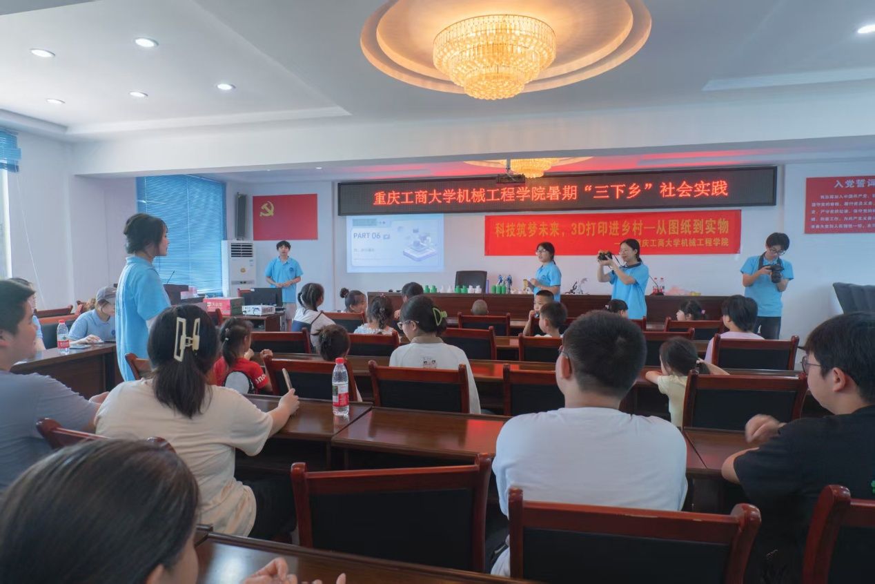 为普及科学知识、助力乡村振兴,7月7日,重庆工商大学122cc太阳集成游戏“红岩铸魂乡土情,机械赋能振兴梦”社会实践团走进江津区支坪镇白溪社区,开展“科技筑梦·创意未来”3D打印乡村科普行活动,为当地中小学生和村民带来了一场科技体验。白溪社区党委书记文德纲,白溪社区居委副主任彭远清和40余名少年儿童参加了本次活动。