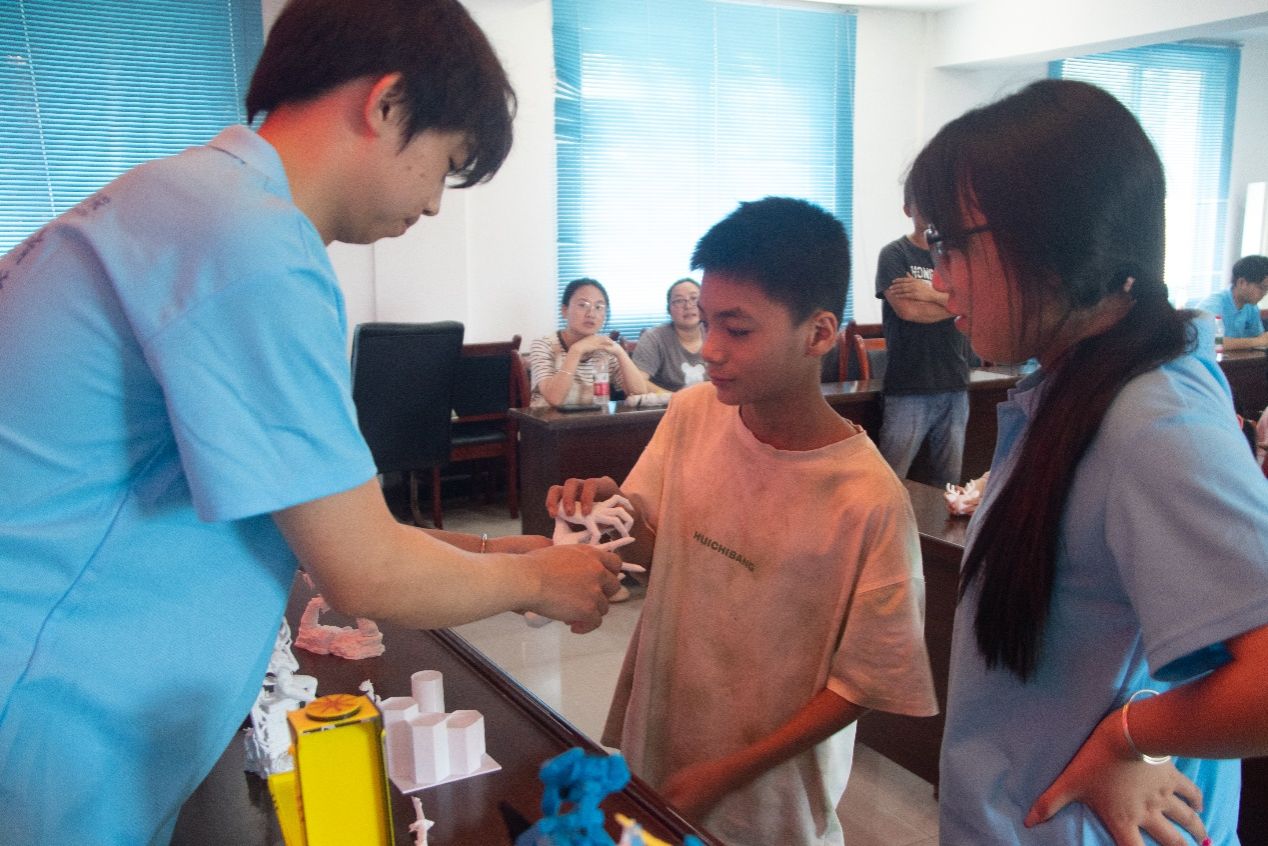 随后,大家围在3D打印机旁,亲眼见证一个个精巧的模型从无到有的诞生过程。各种作品吸引了大家的目光,“3D打印+”将气氛推向高潮。在“自主设计”环节,孩子们以“我心中的支坪镇”为主题描述了支坪镇特色标志,最终团队成员建模完成打印,并将纪念品赠送给参与者。