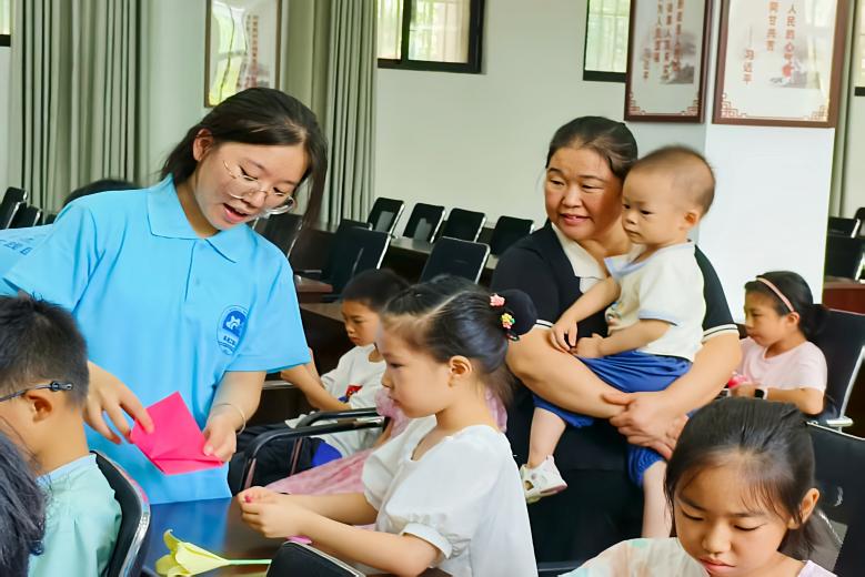 一张张彩纸在指尖翻飞,折出的不仅是形态各异的玉兰,更是儿童对美的感知与创造能力。实践团以折纸为桥,让美育扎根童心,为社区儿童的暑期生活增添了明亮色彩,也彰显了“三下乡”社会实践活动在服务基层、赋能成长中的积极作用。