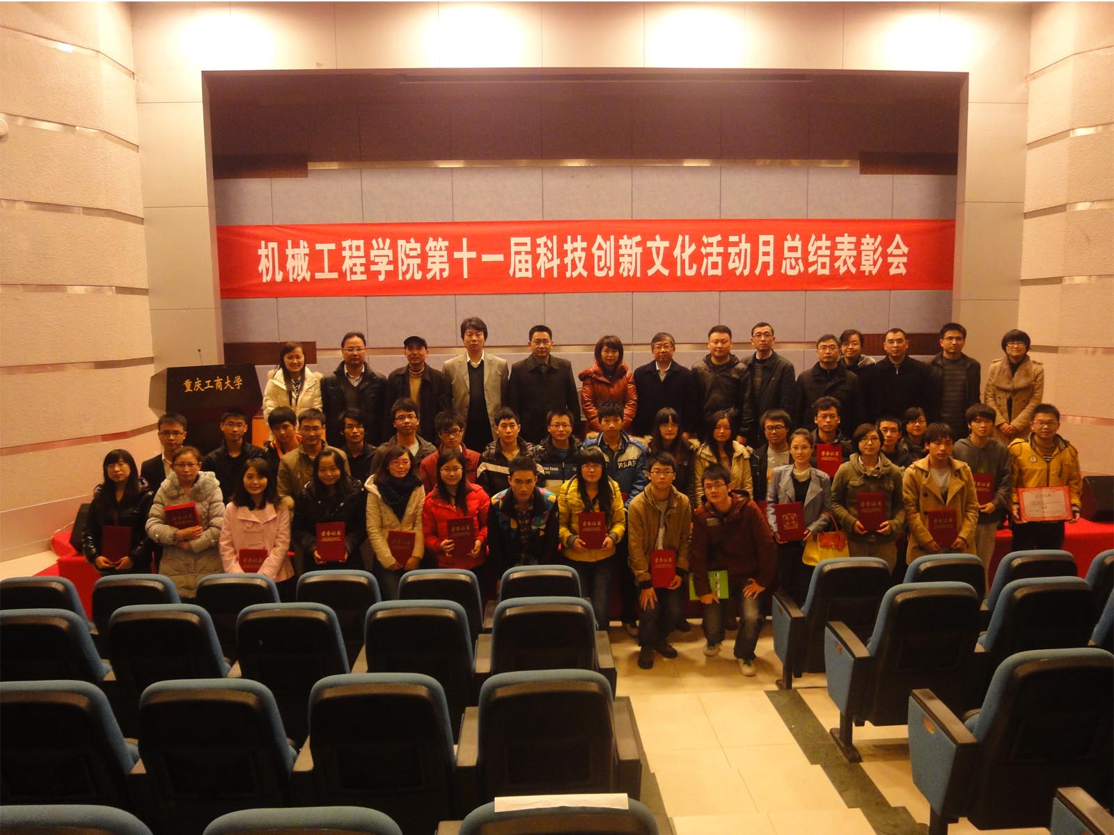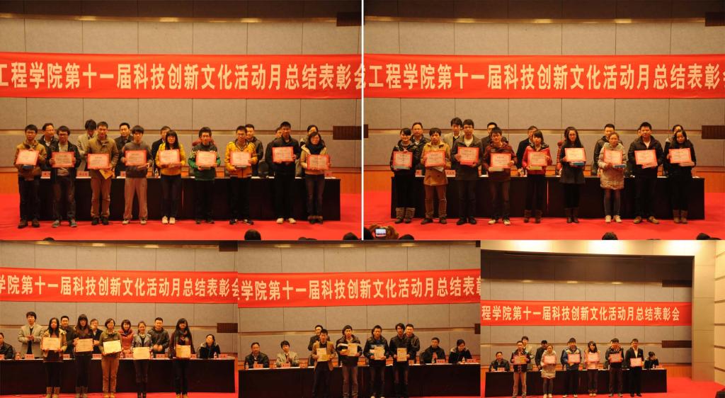 历时一个多月,在学校、学院领导的支持,专业教师的悉心指导下,122cc太阳集成游戏第十一届科技创新文化活动月圆满落下帷幕。2012年12月14日,闭幕式暨总结表彰会在7100报告厅隆重举行。学院全体领导,系主任,指导教师代表,学团办辅导员,2011、2012级学生参加了闭幕式活动。