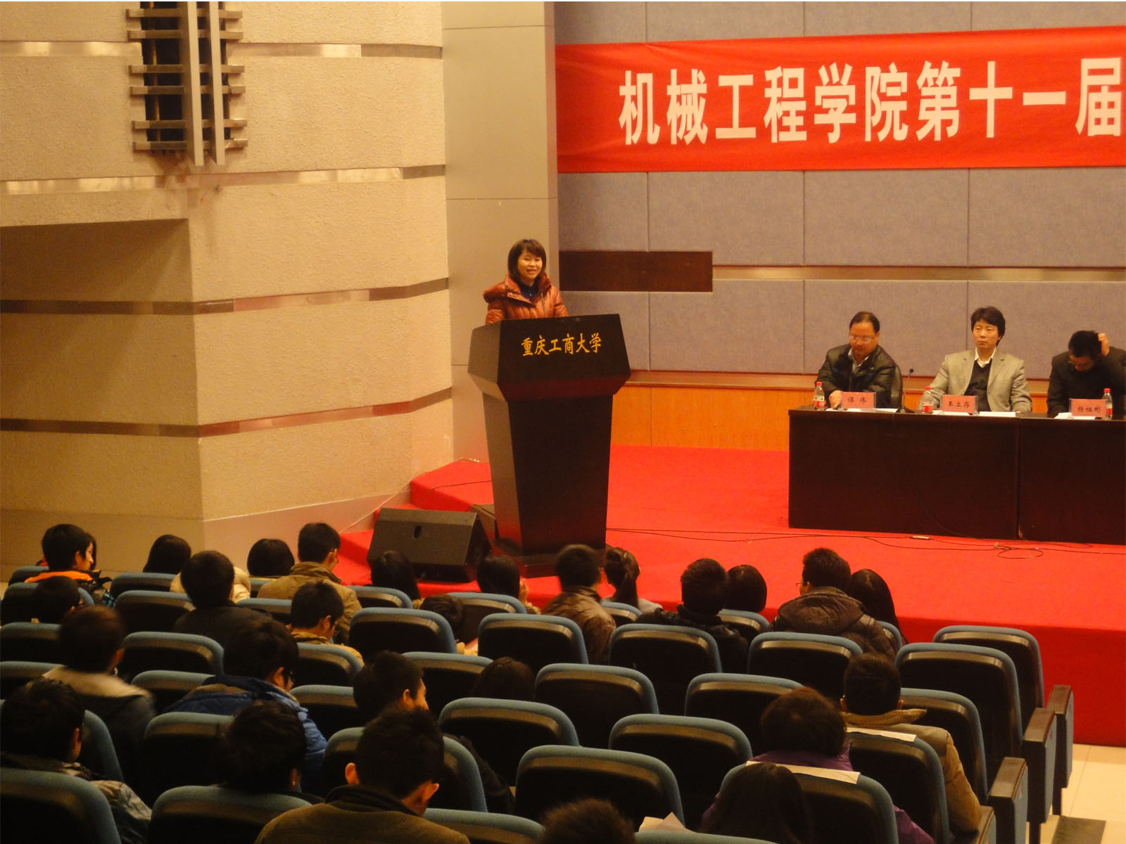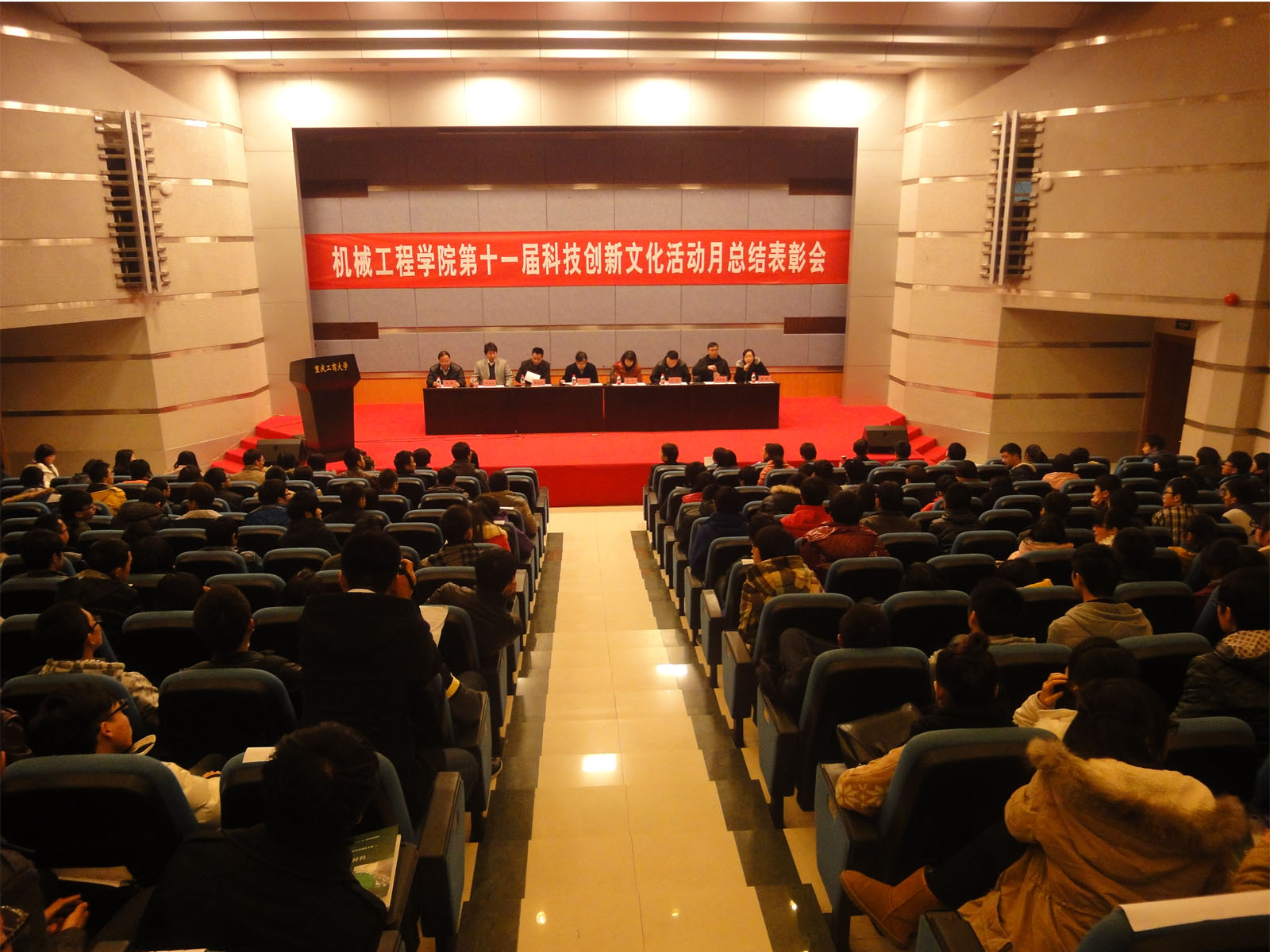 报告会后,总结表彰会隆重举行。首先,分团委书记王微老师对第十一届科技创新文化活动月的各项赛事从活动内容,参与人数,获奖情况、存在不足等进行了总结。接下来,学院领导对获奖学生代表进行了颁奖。本次活月共有四个比赛:“挑战杯”课外科技作品小发明小制作比赛,包装结构设计大赛,“我为工程难题献创意”科技论文比赛,工程图学基础知识竞赛,参与学生268人次,获奖学生33组,共计90人次。指导老师代表李平、程惠峰、王旭东、廖西平老师分别针对四个比赛中的成绩和不足进行了发言,鼓励同学们要善于观察生活,多钻研,勤思考,坚持不懈的做好科技创新活动。获奖学生代表10机电一班陈超同学做了交流发言。最后,杜力院长作了总结发言。她首先对获奖同学表示了祝贺,对同学们积极参与科技创新活动的热情给予了肯定。特别分析了存在的不足之处,提出了要求和希望。科技活动,学科竞赛是理工科大学生锻炼自身能力的一个很好的平台,希望同学们在今后的学习中,积极加入到科技活动的行列中,培养自己的的创新意识和实践动手能力,提升自我的核心竞争力。