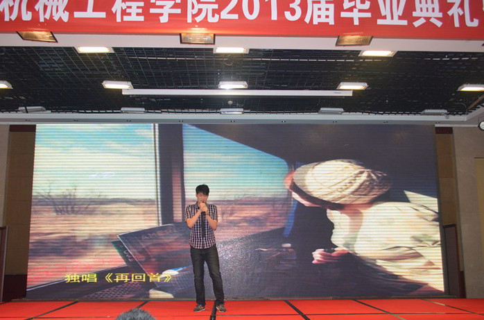 毕业晚会结构紧凑,高潮迭起。一曲充满激情的爵士舞拉开了晚会帷幕。独唱、串烧、小提琴演奏、诗歌朗诵、合唱,晚会的形式多样,精彩纷呈。2013届毕业生将对母校的不舍之情,融入到这一首首歌曲,一个个舞蹈中去,真挚而热烈,引起了一阵阵掌声和欢呼。最后,一首《相亲相爱一家人》引起了现场的大合唱,不仅台上和台下的同学一起唱,学院的领导和老师们也纷纷走上舞台,和同学们一起演唱,不少人留下了感动的泪水。