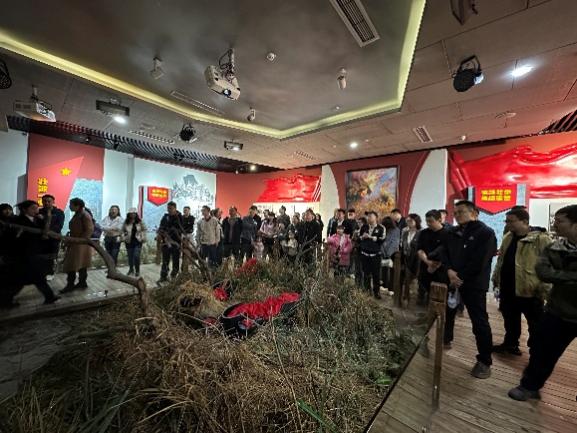 馆内陈列的一幅幅泛黄的历史照片、一件件饱经沧桑的珍贵文物,逼真还原的抗美援朝战斗场景,将众人思绪拉回那个战火纷飞的年代。党员们驻足于陈列柜前,大家认真聆听讲解员讲述邱少云烈士的英雄壮举——1952年10月12日,在朝鲜391高地,为严守潜伏纪律、确保整体战斗胜利,邱少云强忍烈火烧身的剧痛,始终未动分毫,直至壮烈牺牲。大家无不为革命先烈们体现的“纪律重于生命”的精神内核所震撼。