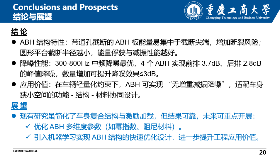 讲座尾声,张云飞博士总结了研究成果并展望未来方向。他指出,经过截断优化的ABH结构在工艺可行性与降噪性能之间取得了良好平衡,为轻量化车辆的噪声控制提供了新思路。下一步,团队将深入优化ABH多维参数,研究阻尼材料影响,并引入机器学习方法推进逆向设计,加速技术落地。张博士还向在场学生发出邀请,鼓励有兴趣的同学参与毕业设计或加入科研团队,共同探索声学重建与噪声控制的前沿领域。