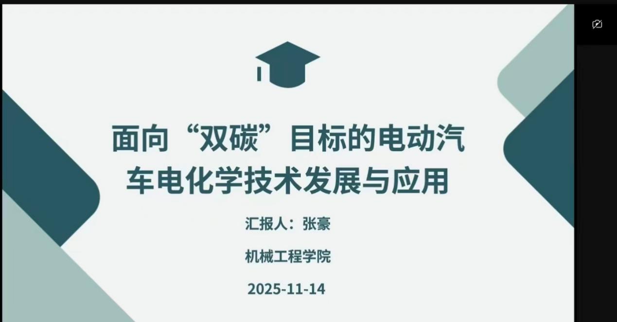 2025年11月14日,张豪老师在线上开展了“博士开讲啦”系列学术讲座——“面向‘双碳’目标的电动汽车电化学技术发展与应用”。张老师先直击新能源汽车“三电”系统对温度敏感的痛点,点明热管理系统需实现座舱、电池、电驱三大子系统协同控温的核心目标;再拆解热管理系统三大模块技术,详解电池“冷却+加热”方案、座舱智能调控及电驱液冷/油冷技术,分享仿真、AI算法与材料创新的工程优化应用;最后总结技术将向集成化、智能化、高效化发展,强调其能破解续航与安全焦虑,为产业技术研发和应用提供参考。本次讲座系统拆解新能源汽车热管理系统技术架构与工程优化方案,破解续航与安全痛点,既为相关领域技术研发、产业应用提供实用参考,也助力新能源汽车核心技术迭代升级,推动产业高质量发展。