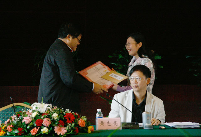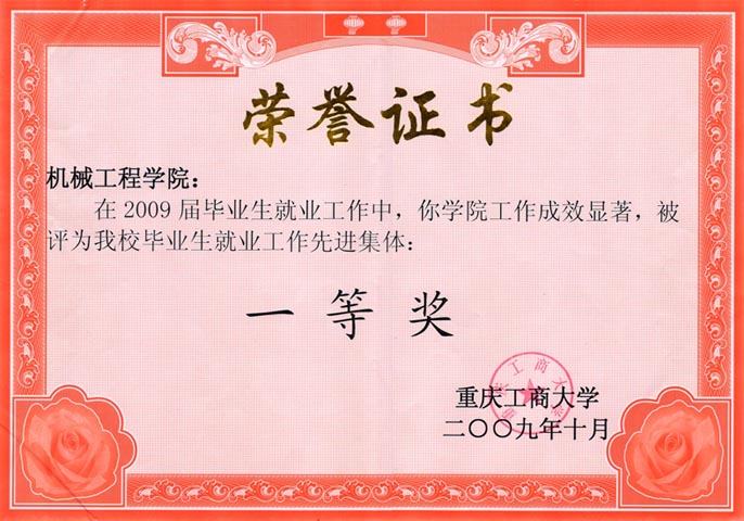 重庆工商大学2009年招生就业工作总结大会,于10月16-17日在白市驿金色阳光酒店成功召开。122cc太阳集成游戏因就业工作亮点突出、各专业就业率高,与本校政治与社会发展学院同时获得全校2009年就业工作先进集体一等奖。学院党总支书记喻永红代表学院,在大会上作了题为《坚持好做法,突破瓶颈口,解决诸问题,争上新台阶》的经验交流,并接受了学校领导的颁奖。