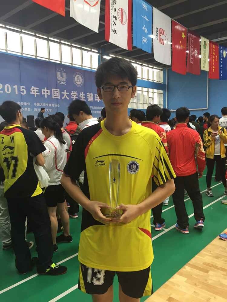 2015年10月27日-31日,我院2013级包装工程专业1班叶飞同学随校队参加中国大学生体育协会主办的“2015年中国大学生毽球锦标赛“,最终以主力队员的身份勇夺男子三人平推组的第三名。