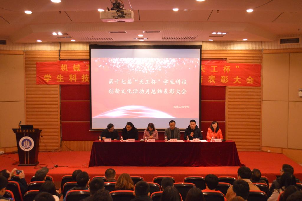 学生科技创新文化活动月活动作为我院的品牌活动之一,一直以来都作为学院引导学生熟悉、热爱本专业的桥梁和纽带,本次活动得到深圳天工科技开发有限公司的大力支持和赞助。历时一个多月,包括科技作品小发明小创作比赛、包装结构设计大赛、包装创意设计大赛、机器人大赛、工程制图大赛、科技论文大赛、汽车发动机拆装大赛、汽车评估师大赛、3D打印大赛,共有345个团队,1314人次参加,参与率达85%。首先,学院院长杜力教授发言,她对整个活动情况进行了点评,并以年级为单位对每一个班级的参赛率进行了分析和总结,鼓励同学们更加不畏困难、勇于创新和探索,希望更多的同学参与各类科技活动,通过科技活动和竞赛来提高专业素质和综合能力。之后,9位指导老师分别对比赛情况、评分规则及优秀作品进行了详细的介绍,对参赛同学们取得的成绩给予了充分的肯定和鼓励,指出了存在的问题与不足,给出了建设性的意见和建议,并进一步动员更多地同学参与到科技活动中来。随后,激动人心的颁奖仪式正式开始,获奖代表依次上台领奖。