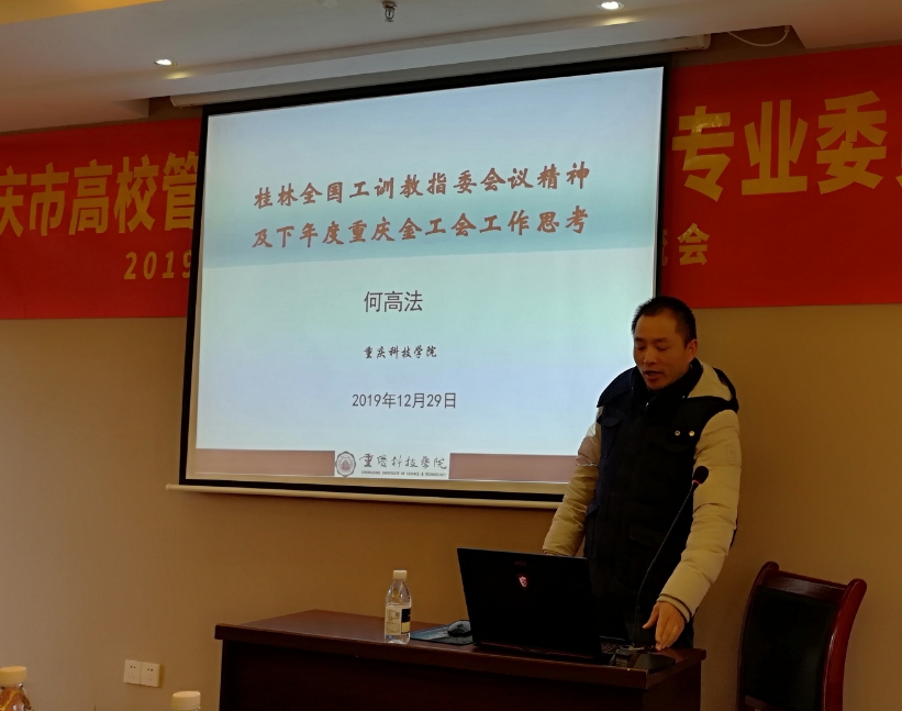 2019年12月28日至29日,重庆市高校教学管理工作研究会金工专业委员会(以下简称重庆金工研究会)2019年第二次理事工作会暨学术交流会在美丽的南山脚下圆满召开。本次会议由重庆金工研究会主办,重庆科技学院、重庆三禾文化传播有限公司承办,会议邀请了包括重庆金工研究会的全体理事单位代表、其他单位代表、特邀专家等重庆10几所高等院校的工程训练中心的主任和实训教师、企事业单位60多名代表参会,共同探讨工程训练中心建设情况、工程训练综合能力竞赛经验分享、面向智能制造与智能机器人的工程训练思考、工程技能训练与工程教育认证等议题。我校122cc太阳集成游戏综合办、机械基础实验教学中心、工程训练中心实训教师等10余名老师参加了会议。