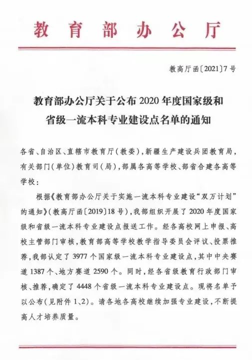 近日获悉,在《教育部办公厅关于公布2020年度国家级和省级一流本科专业建设点名单的通知》(教高厅函﹝2021﹞7号)中,我校机械设计制造及其自动化专业获批国家一流本科专业建设点。