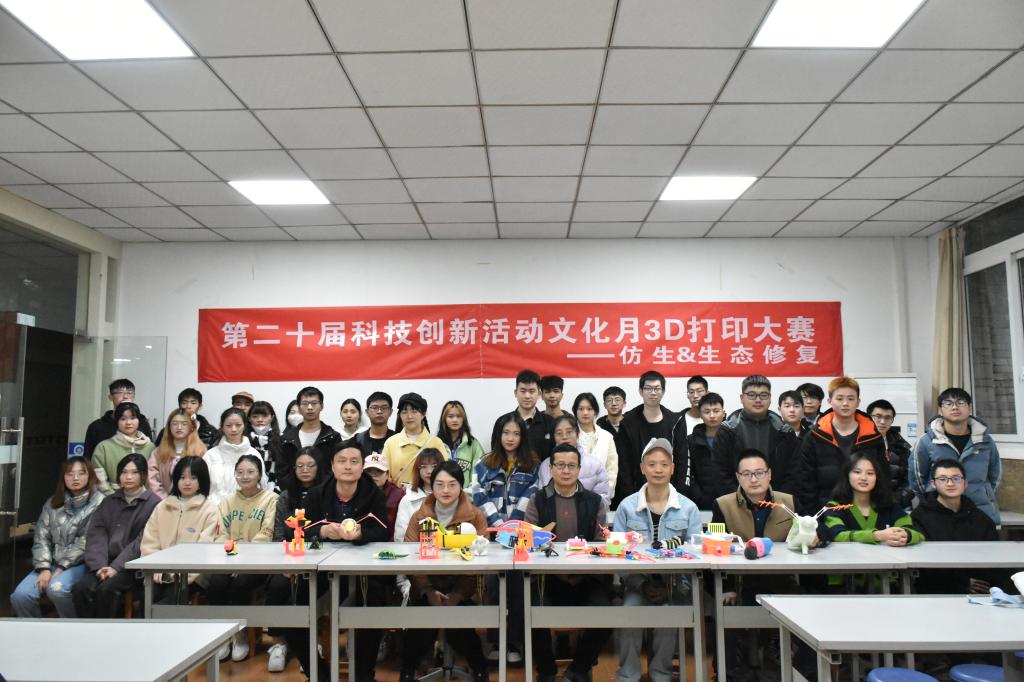 最后,各位老师与参赛同学合影留念。至此,第二十届科技创新文化活动月3D打印大赛决赛圆满结束。