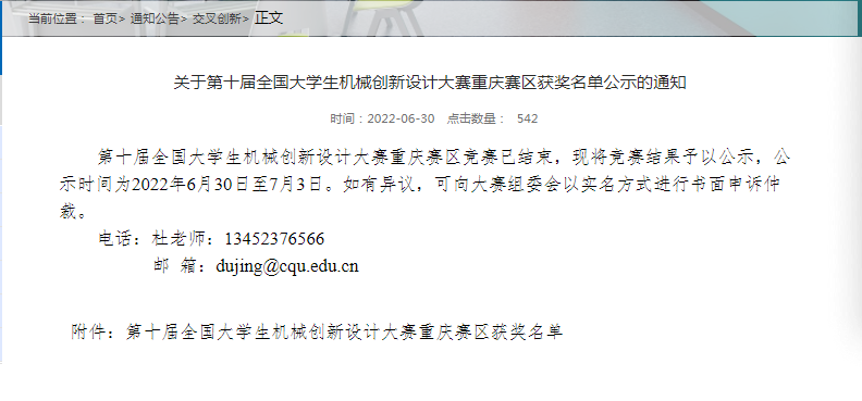 2022年6月26日,第十届全国大学生机械创新大赛重庆赛区竞赛顺利举办,我院派出6支学生团队参赛,历经为期一天的角逐,斩获佳绩。获得重庆市一等奖1项、二等奖3项、三等奖2项,特别是“壁虎队”,不仅获得了重庆市一等奖的优秀战绩,还拿到国赛“入场券”,也是近8年来在该项比赛上首次进入国赛。