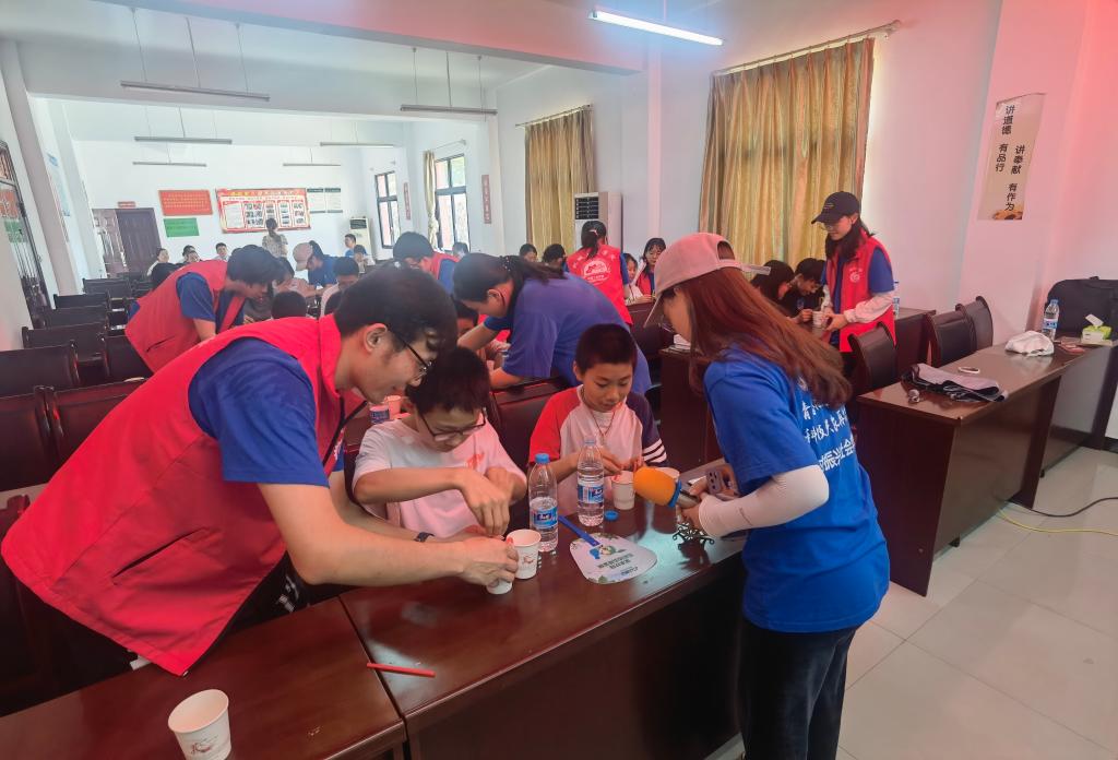 实践团成员们还带领学生们开展了科普小实验——“蓝海沉浮”和“流动的水”。让同学们直观地看到科学的奥秘,学到酸碱中和产生气体的化学知识和U形管“虹吸现象”的物理知识,加深了他们的理解。