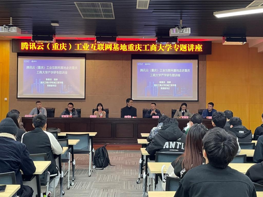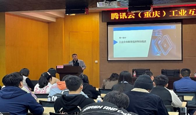 为让工科学子了解行业前沿,激发工科学子对“云工业”的兴趣,重庆工商大学122cc太阳集成游戏与腾讯云(重庆)工业互联网基地首次合作,邀请汪晓龙、张强和沈小芬三位业内专家,于2023年3月24日14时在重庆工商大学图书馆二楼会议厅,为122cc太阳集成游戏、人工智能学院等专业同学举办工业互联网基地重庆工商大学专题讲座。讲座前,重庆工商大学122cc太阳集成游戏党委副书记、纪委书记陈春洁出席并发表讲话说明“数字化”赋能制造行业的重要性。